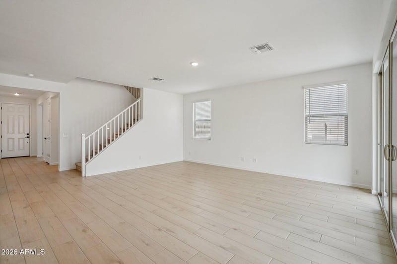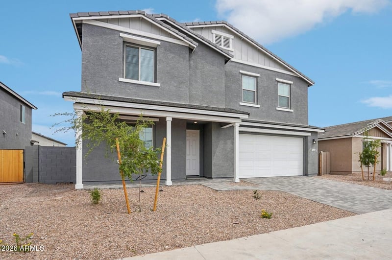 Designed for seamless indoor-outdoor living, a 4-panel sliding glass door opens to the backyard, allowing you to fully enjoy Arizona's beautiful weather. Throughout the home, 8" x 36" plank tile flooring adds warmth and durability, while thoughtful upgrades such as 8-foot interior doors, 2" faux wood blinds, a soft water loop, a garage door opener, and a paver driveway ensure comfort and convenience from day one.