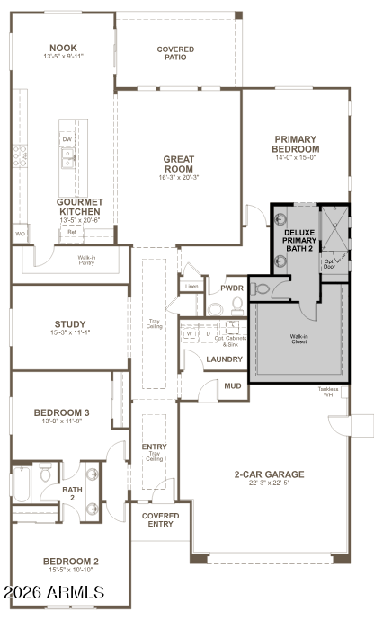 designed gourmet kitchen showcasing a center island, a walk-in pantry and an adjacent dining nook. The lavish primary suite boasts a generous walk-in closet and Deluxe Primary 2 bath option.. Two additional bedrooms flank a full bath, and a convenient laundry and mudroom are located nearby. This home has a study and a powder room in center of home. You'll love our designer-curated fixtures and finishes.