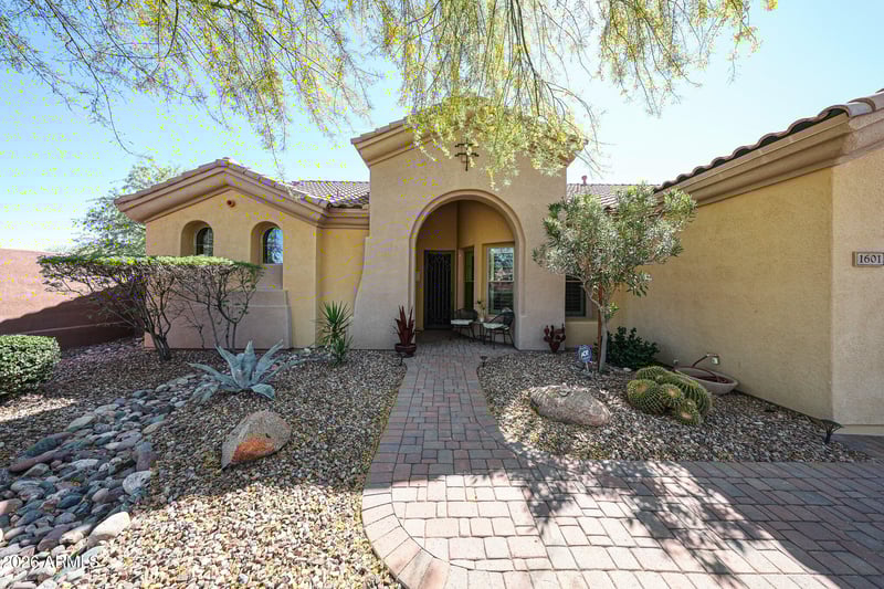Listing details for 1601 Ainsworth Dr, Phoenix, AZ 85086 : Experience refined living in the secure Anthem Country Club community. This updated 2004 residence features three bedrooms and two and a half baths, combining comfort, security, and seamless Arizona lifestyle. Custom enhancements include plantation shutters throughout, a built-in entertainment center, and a tranquil primary suite offering a partially renovated bath, tailored closet system, and a floor-to-ceiling built-in bookshelf. Highlights encompass a modernized kitchen, roof underlayment (2026), water heater, water softener, and a smart thermostat. The outdoor space is enhanced by app-controlled pool equipment, irrigation, sunscreens, landscape lighting, and an expanded paver driveway. Residents enjoy access to resort-style amenities, golf, dining, and an active social community.