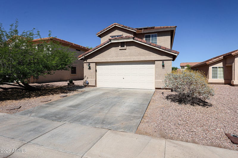 Listing details for 161 223rd Ave, Buckeye, AZ 85326 : Spacious 5 bed, 3 bath two-story home in Sundance! Functional floor plan with a downstairs bedroom and full bath--ideal for guests or multi-gen living. Upgraded flooring in the family room adds a modern touch to the main living area. Eat-in kitchen opens to family room for easy entertaining. Upstairs features a versatile loft perfect for a media room, play area, or home office, along with additional bedrooms and bathrooms. Home includes leased solar for energy savings. Convenient Buckeye location close to parks, schools, shopping, dining, golf and freeway access. Great opportunity to own in a well-established community!