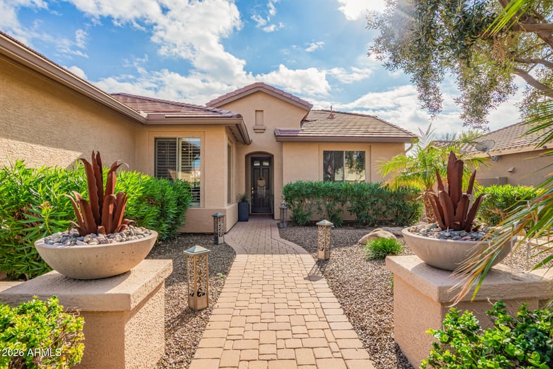 Listing details for 16287 Cheery Lynn Rd, Goodyear, AZ 85395 : Experience luxury living in this breathtaking home located within the highly sought-after PebbleCreek resort community. The desirable EXTENDED Palmera floor plan features a well-designed split layout with two bedrooms plus a den, offering both functionality and privacy. The home seamlessly blends indoor and outdoor living with the optional extended covered patio, inviting you to enjoy the beautifully designed, resort-style backyard. Ideally situated on a premium lot near the Tuscany Sports & Aquatics Complex, Tuscany Fitness Studio, Ed's Dogs, the newly renovated Westwind Tavern, and more, this exceptional location provides endless opportunities for recreation and relaxation. Inside, hardwood floors flow throughout the home, complemented by a chef's kitchen, a spacious and luxurious primary suite, and numerous thoughtfully curated features. The three-car garage offers ample built-in storage along with an extended parking area. Owned solar panels complete this remarkable property, which truly must be seen in person to be fully appreciated. Mortgage savings may be available for buyers of this listing.