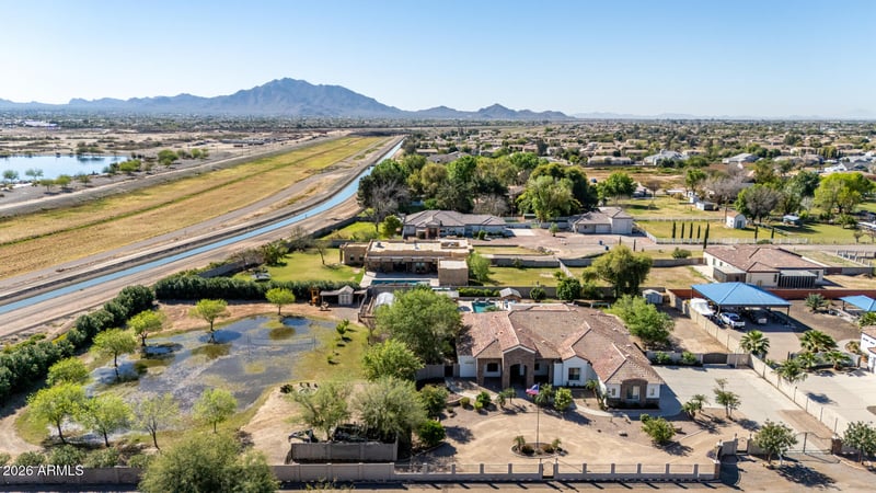 Listing details for 16325 Magnolia Dr, Gilbert, AZ 85298 : Rare opportunity to own a private gated acreage estate on a desirable County Island setting just minutes from Downtown Gilbert. Set on almost 2 irrigated acres, this single-level residence offers over 4,100 square feet with five bedrooms, a dedicated office, and six bathrooms. The grounds are a defining feature, showcasing gardens, raised beds, and a plentiful variety of mature fruit trees including citrus, fig, pear, plum, and stone fruit. Outdoor living centers around a resort-style pool and spa with swim-up bar, shaded gazebos, and a convenient exterior-access pool bath. Additional highlights include canal and trail access, observation deck views, four-car garage, and generous parking areas. The property offers exceptional privacy, space, and the freedom that comes with a County Island Estate Overview: Rare opportunity to own a private gated estate on nearly two irrigated acres in a highly desirable County Island setting just minutes from the energy, dining, and entertainment of Downtown Gilbert. Properties offering this combination of irrigated land, privacy, mature orchards, and convenient access to the town's vibrant amenities are increasingly difficult to find. The residence is thoughtfully positioned near the center of the parcel, allowing expansive grounds to unfold in every direction and creating the sense of a private estate compound surrounded by gardens, trees, and open land.
