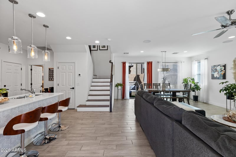 Listing details for 1638 82nd Way, Mesa, AZ 85209 : Comfort, space, and smart living come together in this beautifully designed two-story home! Offering 1,956 sq ft of spacious living, this 3-bedroom, 2.5-bath residence is nestled in a serene community and enhanced with solar for energy efficiency. The thoughtfully designed layout features vinyl flooring throughout, a versatile den, and a spacious loft—ideal for a home office, media room, or play space. The open kitchen is the heart of the home, showcasing granite countertops, a center island, breakfast bar, and pantry, perfect for both everyday living and entertaining. Upstairs, the split primary suite provides a peaceful retreat with a double-vanity bath, while the additional bedrooms offer comfort and privacy. Furniture may be included if desired, making this home truly move-in-ready. Step outside to your private yard complete with a built-in BBQ, ideal for relaxing or hosting guests. A 2-car garage adds convenience. Enjoy community amenities including a children's playground, fenced pool, and walking paths, making this home a perfect blend of comfort, functionality, and lifestyle.