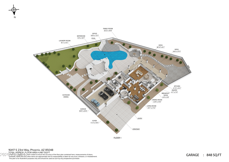 16417 23rd Way, Phoenix, AZ 85048 and is listed for sale at $1,450,000.00. This home was built in 2005, contains 4487 square feet of living space, and sits on a 0.36 acre lot. This residential home is priced at $323.16 per square foot.