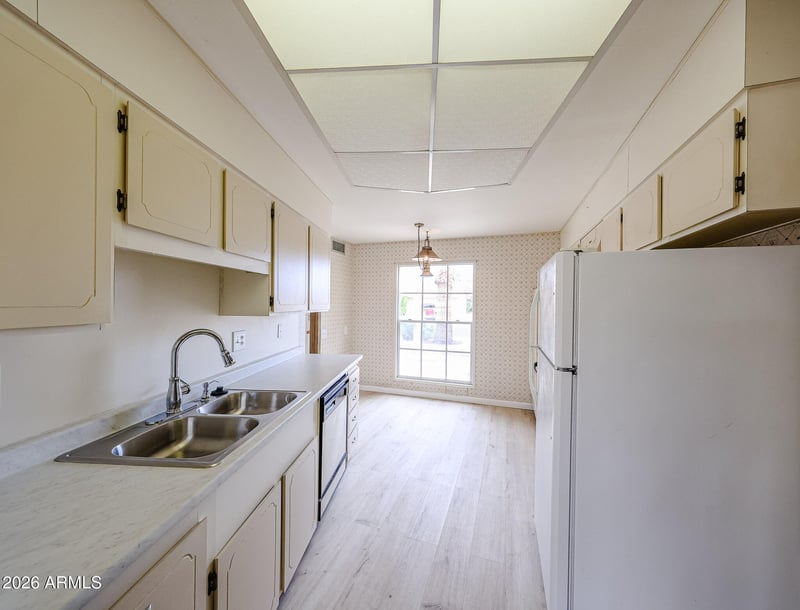 Listing details for 16418 Orchard Hills Dr, Sun City, AZ 85351 : Quaint 2bs/1ba home in quiet Adult neighborhood. Home features new laminate flooring through out and fresh neutral paint inside and out. A large living room with open concept dining. Kitchen is dated but clean and functional. Bedrooms are large with large closets. Bathroom has walk in tub. Large yard with fenced in area and doggie door for your pets, Covered patio for early morning coffee or entertaining. Extra Large garage with cabinets, Desert and gravel landscaping for easy maintenance. Close to amenities and the 101. Just waiting for your personal touch to make it a home