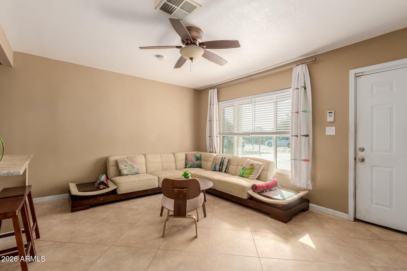 Listing details for 1644 Sonora St, Phoenix, AZ 85007 : This stunning home features three bedrooms, a den, and a formal dining room, perfect for both family living and entertaining. Stylish tile floors and two-tone paint create a modern aesthetic throughout, complemented by ceiling fans in every room for added comfort. The kitchen is a chef's delight, equipped with stainless steel appliances, granite countertops, a gas stove, and a convenient breakfast bar. Retreat to the primary bedroom with its own entry and spacious walk-in closet. The bathrooms feature tiled showers and baths for a touch of luxury. New Carpet. Enjoy outdoor living in the large fenced yard, with a shed for extra storage. With double-pane windows and beautiful views of South Mountain, this home is also conveniently located near downtown Phoenix, offering easy access to I-17 and Interstate 10, and is close to a nearby park.