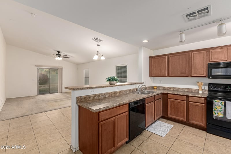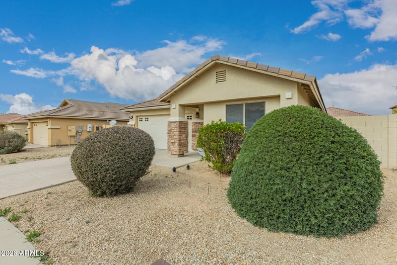 The primary suite provides a peaceful retreat with a private en-suite bathroom and plenty of closet space. Two additional bedrooms offer flexibility for family, guests, or even a home office. Step outside to a generously sized backyard featuring an RV gate--perfect for storing recreational vehicles, trailers, toys, or creating additional flexibility for your lifestyle needs. With plenty of space to design your ideal outdoor retreat, this yard offers incredible potential for entertaining, gardening, or relaxing under the Arizona sky.