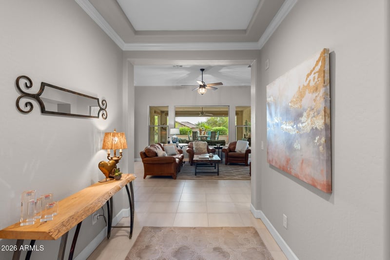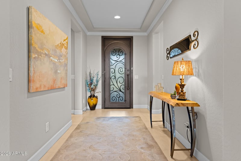 Listing details for 16705 Virginia Ave, Goodyear, AZ 85395 : Welcome to this stunning Tesoro model offering over 2,500 square feet of thoughtfully designed living space with high-end finishes throughout. As you approach the home, you will notice the custom iron entry door with elegant iron hardware and artisan glass. This beautifully appointed 2-bedroom, 3-bath home includes a large private office with glass doors, perfect for working from home.