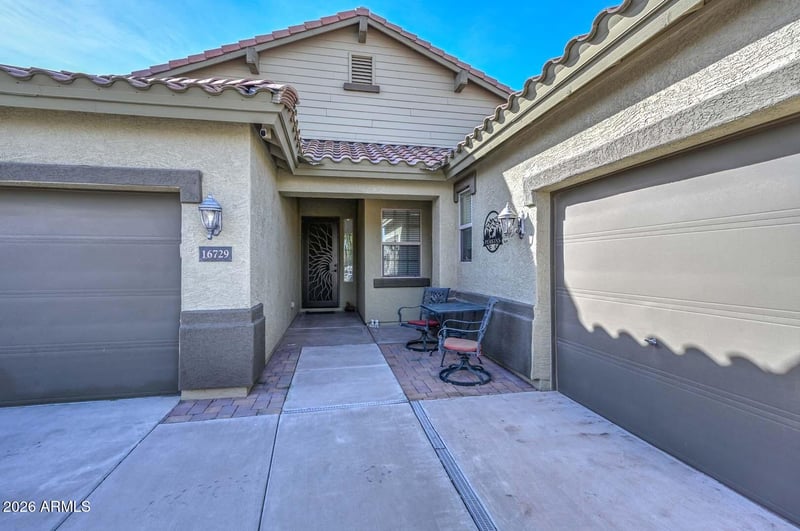 Listing details for 16729 Jackson St, Goodyear, AZ 85338 : BEAUTIFUL property located in Goodyear's ''Canyon Trails'' neighborhood. Uniquely located in the curve of the street so ample parking available & no direct neighbor to the left or behind. Split 3 car garage & RV gate. Exquisite 3 bed + Den, 2 bath. Formal Living & Dining w/large windows for loads of natural light. Gorgeous Kitchen with Rich Cabinetry, built in Fridge (with wood accent of cabinets) Large Island, Newer Double Ovens, Cook top and Microwave. Granite Countertops, & Spacious Pantry. Split Master Bedroom W/Luxurious Master Bath, Dual Sink, Separate Shower & Tub, Solar Tube in Master Closet for Natural Sunlight, Master has private Exit to Back Patio. Backyard is PERFECT for Entertaining, Artificial Turf, Private & Spacious. A/C has been recently replaced within the last year. Backyard is PERFECT for Entertaining, Artificial Turf, Private & Spacious. Wood Blinds-Soaring Ceilings-Neutral Tile in all the right places. A/C has been recently replaced