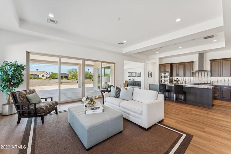 Listing details for 16777 Sheila Ln, Goodyear, AZ 85395 : New Avalon Plan Home in PebbleCreek Resort community for 55+ adults. Ready to move in. 2-bedroom, 2.5 bath, Den, 3 car garage & landscape included. Design team selections: Revere Style Beechwood cabinets w/dove-tail soft close drawers, Luxury Vinyl Plank/carpet flooring. quartz/granite countertops w/full height backsplash, built in LG gas appliance package w/wall oven, gas cooktop and chimney hood, Refrigerator. W/D, wet bar & beverage center, butler's pantry, Curbless shower w/tile surrounds and deco flooring, two tone paint, gas BBQ Stub, 4' garage extension & more! Ask about the high-quality energy standards. The award winning PebbleCreek Resort Community has 3 Championship Golf courses, 36 Pickleball courts, Indoor/outdoor pools, fitness & art centers, 100's of social clubs & more!