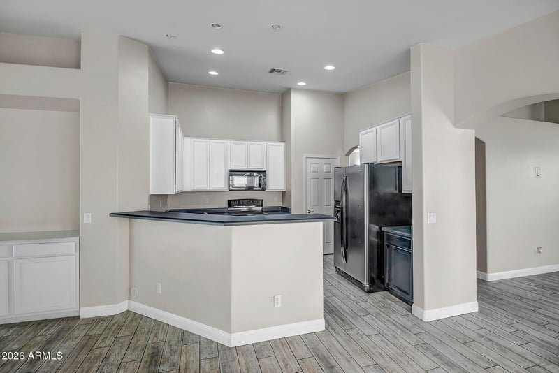 Listing details for 16873 Mesquite Dr, Goodyear, AZ 85338 : Welcome to this charming home featuring a bright, open-concept floor plan & tasteful finishes throughout. The spacious living area flows seamlessly into the kitchen, highlighted by a breakfast bar, modern appliances & neutral tones that complement any style. Vaulted ceilings & abundant natural light create an airy, welcoming atmosphere. Thoughtful layout offers comfortable living & flexible spaces for dining, entertaining, or perhaps working from home. Be outdoors year round with the amazing Arizona room & private backyard with a flagstone patio & fire pit —perfect for relaxing, entertaining, or enjoying sunny days. Additional highlights include low-maintenance desert landscape & a quiet neighborhood setting. This move-in-ready home offers comfort, functionality, & style all in one.