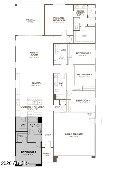 Listing details for 16982 Desert Ln, Goodyear, AZ 85338 : Welcome home to the Raleigh--a beautifully designed single-story residence offering 5 bedrooms and 3 full baths, thoughtfully laid out for comfort, flexibility, and modern living. This open-concept floor plan features spacious living areas filled with natural light, a well-appointed kitchen ideal for entertaining, and a private primary suite tucked away for added tranquility. With multiple secondary bedrooms, this home is perfect for guests, a home office, or multi-generational living. Located in the sought-after Estrella master-planned community, residents enjoy access to lakes, scenic trails, resort-style amenities, and a true sense of community--all set against stunning desert and mountain views. A rare combination of space, functionality, and lifestyle- -this Raleigh plan is designed to fit the way you live today!