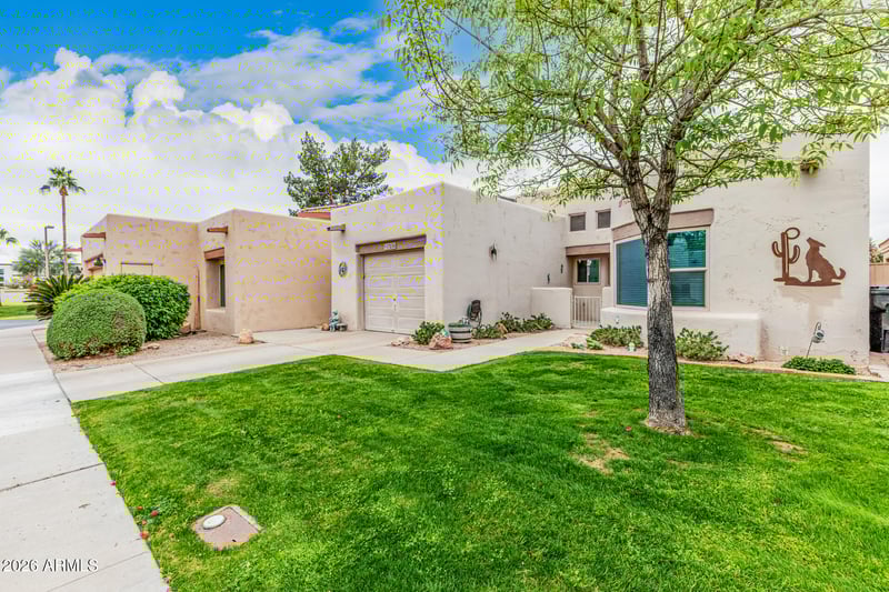Listing details for 17056 Zuni Trl, Surprise, AZ 85374 : Located in a desirable guard-gated adult community, this 2-bedroom, 2-bath home offers a split primary layout with a walk-in closet for added privacy and comfort. The eat-in kitchen and skylights create a bright, inviting interior ideal for everyday living. Enjoy community amenities including a heated pool, tennis courts, and a clubhouse. Out back, relax or entertain on the patio with a charming gazebo, perfect for enjoying Arizona's outdoor lifestyle.