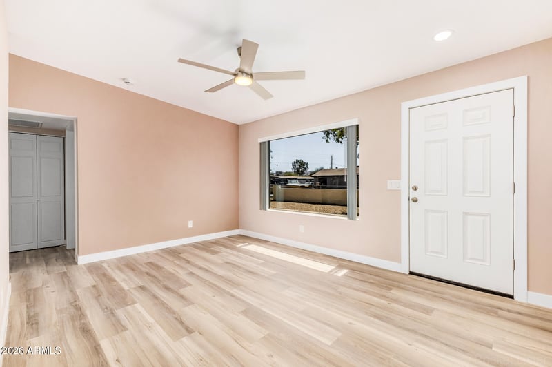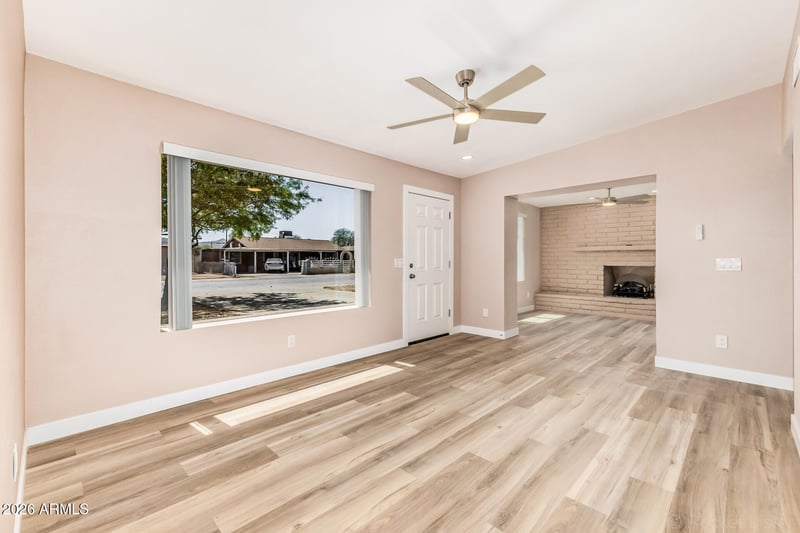 Listing details for 1712 Corona Ave, Phoenix, AZ 85041 : This fully remodeled, move-in ready 3-bedroom, 2-bath home is the one you've been searching for! Step inside to an inviting living room with vaulted ceilings, a soothing palette, blinds, and stylish wood-look flooring throughout. The dedicated family room features a cozy fireplace, perfect for relaxing evenings. The updated kitchen showcases granite countertops, crisp white shaker cabinets, recessed lighting, and sleek stainless steel appliances, creating a clean and modern space for everyday living and entertaining. A versatile bonus room offers flexibility as a home office, lounge, or potential 4th bedroom. The primary suite provides a comfortable retreat with plush carpeting and a private bathroom. Situated on an expansive 11,000+ sq ft lot, the backyard includes an RV gate and ample space to design your ideal outdoor oasis. Extensively renovated down to the foundation, this home features updated electrical, plumbing, and HVAC, offering both style and peace of mind. Don't miss the opportunity to own this beautifully revitalized home!