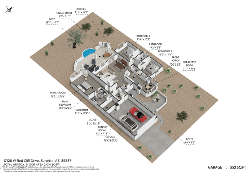 17126 Red Cliff Dr, Surprise, AZ 85387 and is listed for sale at $565,000.00. This home was built in 2003, contains 2014 square feet of living space, and sits on a 0.21 acre lot. This residential home is priced at $280.54 per square foot.