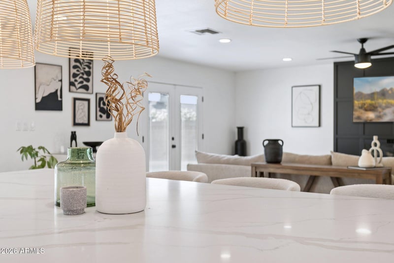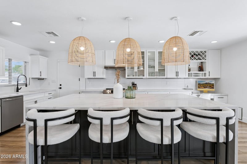 Listing details for 1715 Orchid Ln, Phoenix, AZ 85021 : Beautifully updated home in the coveted Royal Palm neighborhood with perhaps the best kitchen in the neighborhood! Featuring French oak, wood look flooring, a beautifully curated, open concept great room and an expansive quartz island this home offers elevated entertaining.