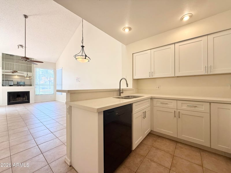 Listing details for 1717 Union Hills Dr #1073, Phoenix, AZ 85024 : Nice 2-bedroom townhome with a spacious loft in the highly desirable Cliffs at North Canyon community! Thoughtfully updated in 2022, this home features new kitchen cabinetry, quartz countertops in both the kitchen and downstairs bath, and newer carpet throughout. The open-concept floor plan offers a large living area with an eat-in dining space, while the kitchen overlooks the main living areas—perfect for entertaining. Upstairs, the primary suite includes a private loft ideal for a home office, reading nook, or additional sitting area. Vaulted ceilings and ceiling fans enhance the light and airy feel of the home, and the cozy fireplace adds warmth and charm. Additional features include vertical blinds, ceiling fans throughout, and all appliances included with down-stairs laundry. Step outside to your private courtyard patio with extra storage, conveniently located right next to the community pool for effortless relaxation and enjoyment. This home is move-in ready with new HVAC in 2025.