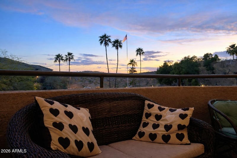 Listing details for 1720 Thunderbird Rd #2003, Phoenix, AZ 85022 : AFFORDABLE DESERT-VIEW LIVING. Set back just enough to capture open desert views and unforgettable sunsets--a rare find at this price point. Bright and airy retreat at The Cliffs at North Mountain, nestled beside the scenic Phoenix Mountain Preserve. This two-bedroom, split bedroom layout, two-bath condo feels larger than its size, with an open layout that offers space for a kitchen table and a walk-in closet for added storage. Enjoy mountain views from your front porch, and relax knowing your home includes modern upgrades like a newer water heater, smart thermostat, Ring doorbell, and new tile backsplash. The pet-friendly community features WiFi-equipped gym, clubhouse you can rent out, and two exterior storage closets on the patio. Avoid the traffic with a back entrance that skips the left turn on Thunderbird. Whether you're hiking the nearby trails, golfing at Lookout Mountain or simply relaxing in the shade of the mountains this home is your perfect base.