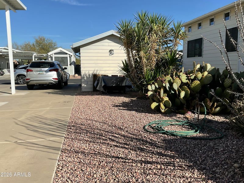 Listing details for 17200 Bell Rd #1383, Surprise, AZ 85374 : Lot #1383 is over 3,000 square feet with a 665 sq. ft. cover and a 10' X 12' shed with washwer and dryer. Lot faces north on Ironwood Street.