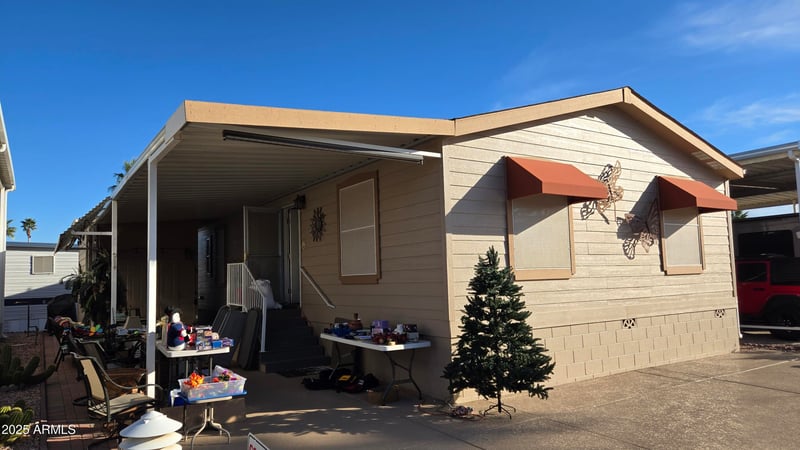 Listing details for 17200 Bell Rd #754, Surprise, AZ 85374 : Across the street from Golf Course Hole #12 and Town Center. Enjoy resort-style living in this gated 55 community where the land is deeded to the Buyer. Plenty of room with 2 Bedrooms, 2 Bathrooms Double-Wide Mobile Home, Golf Cart garage and Golf Cart included. Upgraded Heat Pump (2024, W/D (2024), Cabinet Paint, Garbage Disposal & Sink (2024), Flooring (2020), Awning (2015). Fully Furnished Great opportunity for the savvy buyer.