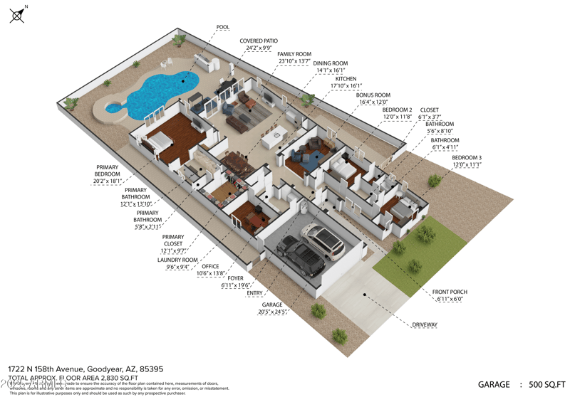 1722 158th Ave, Goodyear, AZ 85395 and is listed for sale at $729,000.00. This home was built in 2014, contains 2830 square feet of living space, and sits on a 0.2 acre lot. This residential home is priced at $257.60 per square foot.