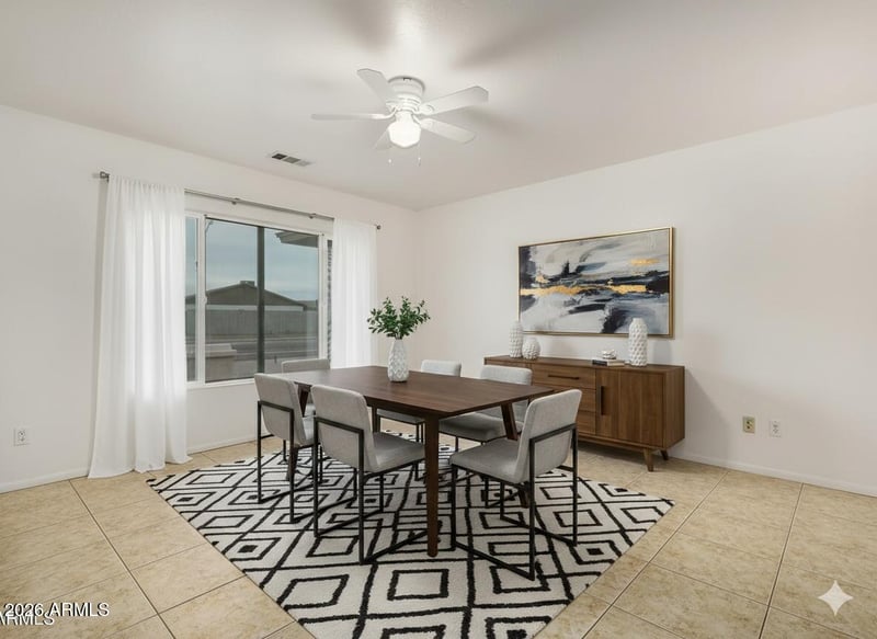 Listing details for 17226 31st Ave, Phoenix, AZ 85053 : Enjoy peace of mind with a new roof and AC system installed in 2021. This beautiful 4-bedroom residence welcomes you with excellent curb appeal, featuring a 2-car garage, an extended driveway, and effortless desert landscaping. Discover an inviting living room with a soothing palette, blinds, and durable tile flooring. You'll also find a family room featuring an inviting fireplace for relaxing evenings with loved ones. The kitchen comes with ample wood cabinetry, stainless steel appliances, a walk-in pantry, and a practical pass-through with a breakfast bar. The main bedroom features sliding door access to the backyard for seamless indoor-outdoor flow, a private bathroom, and a walk-in closet. Venture out onto the backyard offering a covered patio and abundant space.