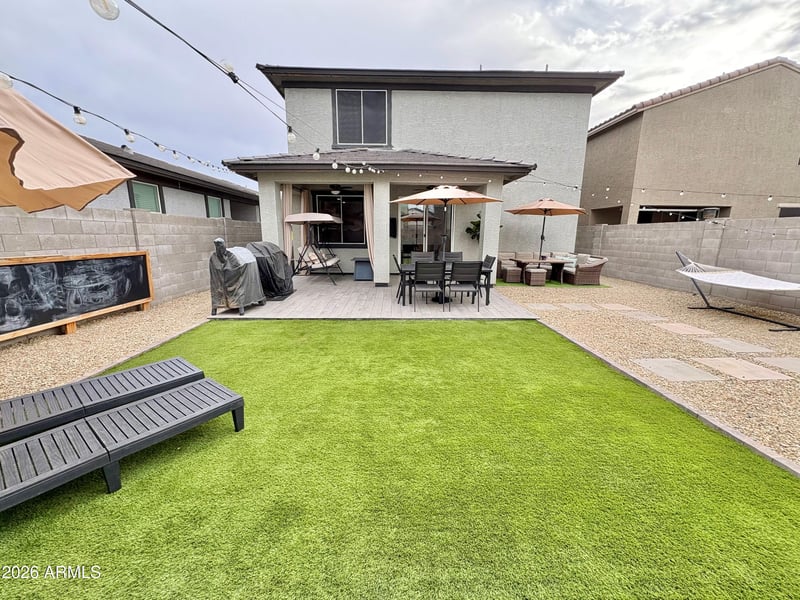 The primary suite boasts a fully customized built-in closet, While the luxury-style backyard impresses with a tiled patio, artificial turf, and a cozy fire pit- perfect for relaxing or entertaining. A truly move-in-ready home with exceptional upgrades throughout.