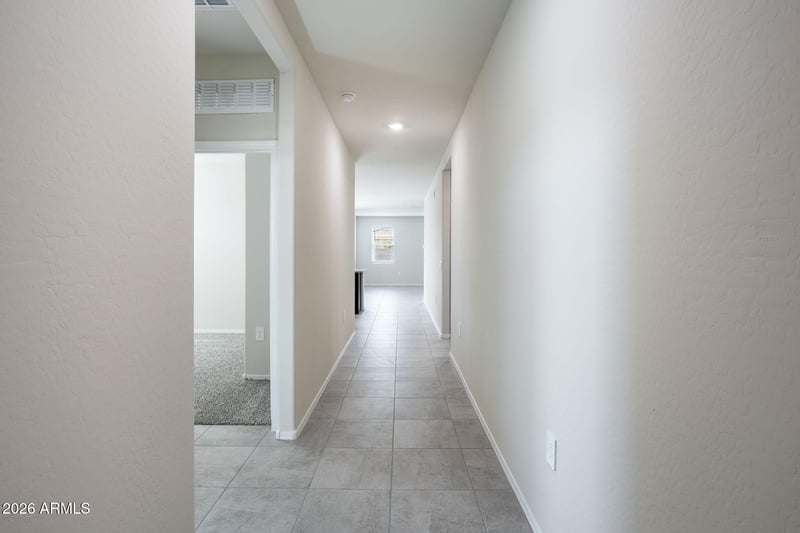 Listing details for 17446 Illini St, Goodyear, AZ 85338 : June completion!!! - The beautiful Cali layout features a 3-way split floorplan with open great room concept! Oversized windows, covered front porch, and large sliding glass door make for a light and bright home with 9-foot ceilings and 8' doors throughout! Kitchen is stunning with coffee brown cabinets, brushed nickel cabinet hardware, and SS Whirlpool appliances that complement the quartz countertops. kitchen island. With large bedroom sizes and additional options added such as a gas-stub to the backyard for future entertaining and smart home features such as a WiFi garage door opener, electronic front door lock/keypad, and a 220V outlet in the garage, this home is going to impress!