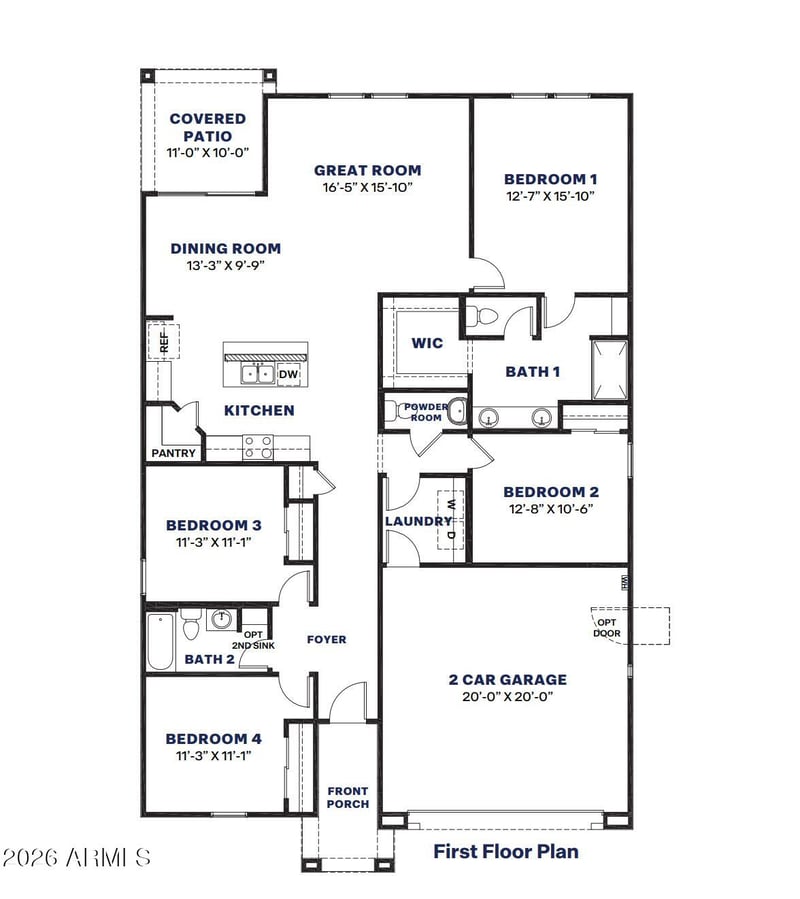 Listing details for 17461 Illini St, Goodyear, AZ 85338 : June completion!!! - The beautiful Cali layout features a 3-way split floorplan with open great room concept! Oversized windows, and 8' sliding glass door make for a light and bright home accompanied by 9-foot ceilings and 8' doors throughout! The kitchen is stunning with coffee brown cabinets, brushed nickel cabinet hardware, and SS Whirlpool appliances that complement the quartz countertops. kitchen island. With large bedroom sizes and additional options added such as a gas-stub to the backyard for future entertaining and smart home features such as a WiFi garage door opener, electronic front door lock/keypad, and a 220V outlet in the garage, this home is going to impress!