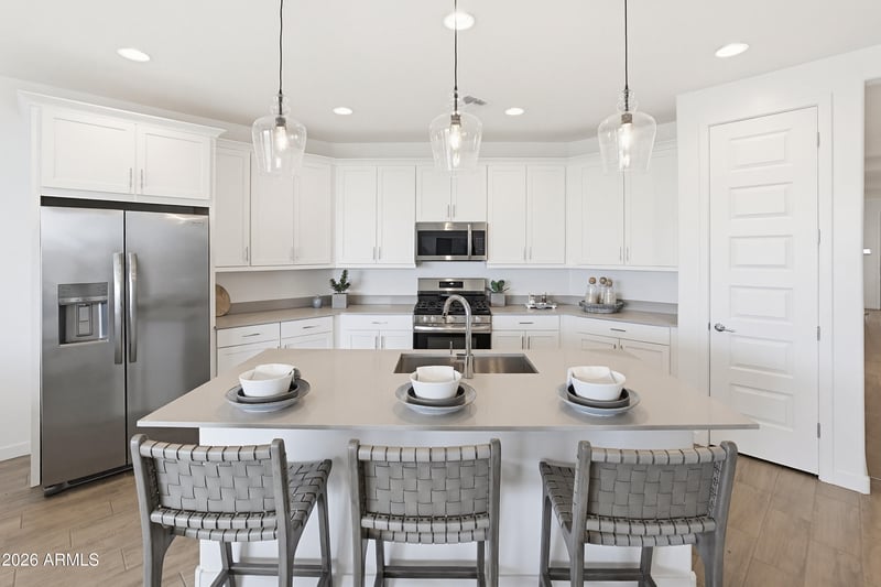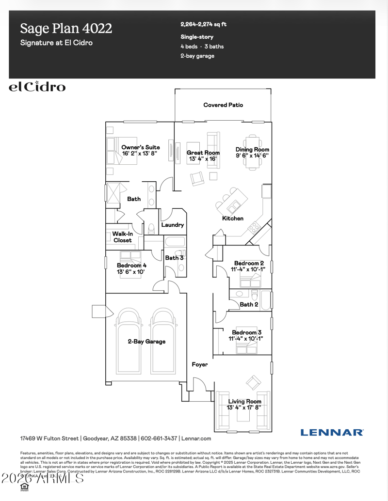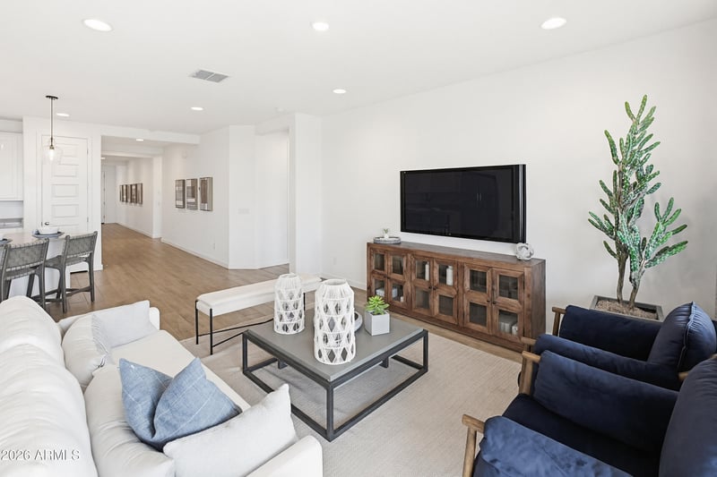 Listing details for 17469 Fulton St, Goodyear, AZ 85338 : Former Lennar model home with designer furnishings available on a separate bill of sale! This spacious single-level home offers a versatile layout with an open-concept Great Room, kitchen and dining area designed for comfortable living and effortless entertaining. A separate formal living room off the foyer provides flexible space that can easily serve as a study, den or additional lounge area. Enjoy Arizona living year-round with a generous covered patio perfect for indoor-outdoor gatherings. Four well-sized bedrooms complete the home. Located in a brand-new Goodyear community featuring parks and convenient access to I-10, with nearby outdoor recreation, golf, hiking and Goodyear Ballpark offering year-round entertainment.