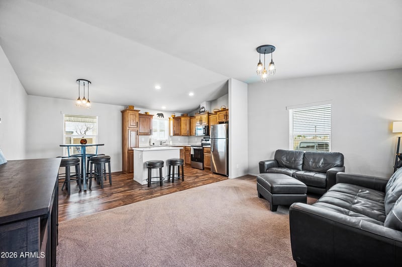 Listing details for 17506 Van Buren St #524, Goodyear, AZ 85338 : Welcome to Cotton Lane Resort, a vibrant 55+ community in Goodyear! Situated on a corner lot, this 2 bed, 2 bath 2025 double-wide offers a cozy, simple design ideal for those who live actively but want an easy place to retreat and recharge. Enjoy single-level living with no interior steps, laminate flooring, recessed canned lighting throughout, and a bright, functional layout. Built with R-40 roof insulation for excellent energy efficiency, this home was designed for comfort. Indoor laundry and a covered two-car carport add everyday convenience. With resort amenities and typically more affordable living than many comparable parks, this is active adult living made simple.