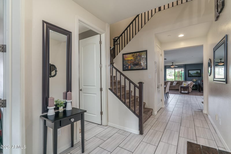 Listing details for 1754 212th Ln, Buckeye, AZ 85396 : Step into this stunning, thoughtfully designed home offering 4 bedrooms, a spacious loft, and a private downstairs office, all centered around an open-concept great room perfect for modern living. The kitchen features abundant cabinet space, stainless steel built-in double wall ovens, and a large island with a breakfast bar. Upstairs, you'll find all bedrooms along with a generous loft. The primary suite boasts tray ceilings and an ensuite with a soaking tub, tiled shower, and dual sinks. The backyard is a serene retreat, showcasing a built-out deck with a firepit that perfectly frames mountain views, a bench swing, and meticulously maintained landscaping designed for ultimate relaxation.