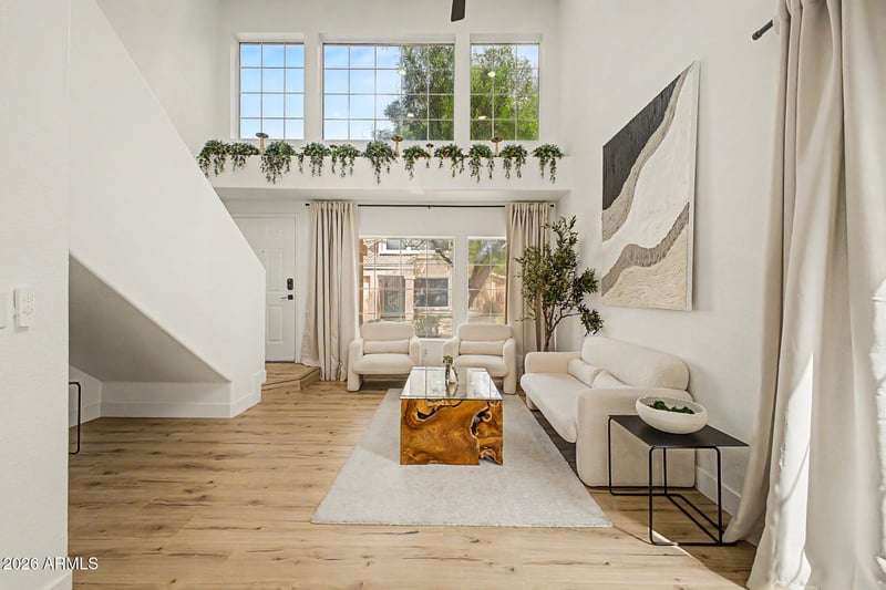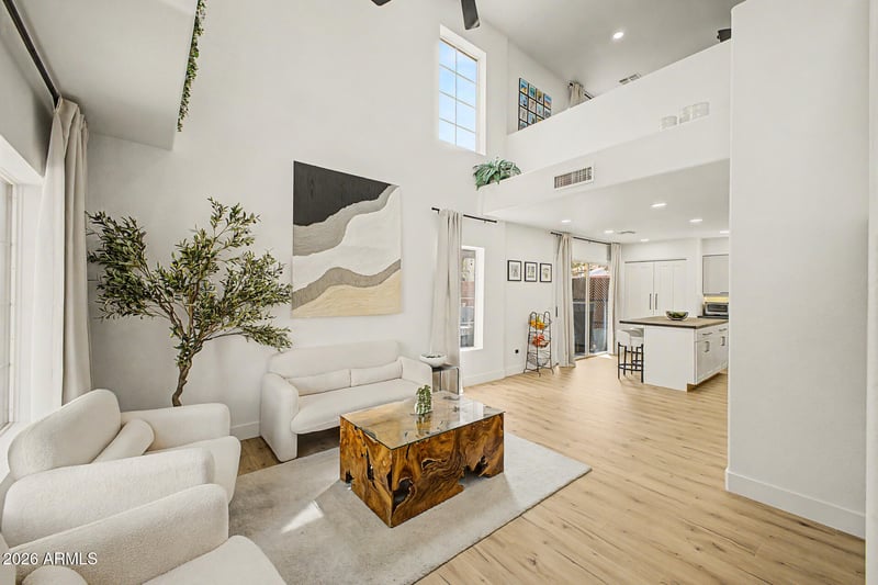 Listing details for 17606 17th Pl #1026, Phoenix, AZ 85022 : GATED COMMUNITY, RENOVATED, DUAL PRIMARY SUITES! Completely remodeled 2 bed, 2 bath with an oversized loft that can convert to a third bedroom, offering flexibility that is hard to find at this size. Upgrades include NEW roof, NEW water heater, NEW flooring, fresh paint, a redesigned kitchen, NEW light fixtures and fans, and NEW appliances throughout. The layout features two primary suites, one on the main level and one upstairs, creating ideal separation for guests or multi-use living. The upstairs loft adds valuable bonus space for an office, media area, or future bedroom conversion. Located within a gated community with access to a pool, supporting low-maintenance living. Positioned with quick access to the 101 and 51 freeways, making daily commuting and travel efficient. Close to major retailers including Costco, Albertsons, and Walgreens for everyday convenience.