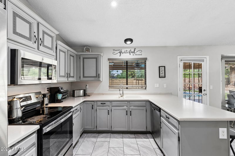 Listing details for 17608 42nd Ln, Glendale, AZ 85308 : Sparkling diving pool, RV gate, and no HOA - backyard living at its best! Beautifully updated 4 bed, 2 bath home offers the perfect blend of comfort, upgrades, and outdoor enjoyment. Outside is a private retreat featuring a sparkling 10-ft diving pool, covered patio, RV gate, and amazing landscaping on a spacious lot - ideal for entertaining or relaxing under the Arizona sun. The covered patio overlooks the lush backyard, creating a seamless indoor-outdoor experience. Inside, the home features upgraded finishes and a functional layout designed for everyday living. The kitchen offers large hardwood cabinets with plenty of storage space for all your needs. With no HOA, a large lot, and standout outdoor features, this home is a rare find that combines flexibility, style, and lifestyle.