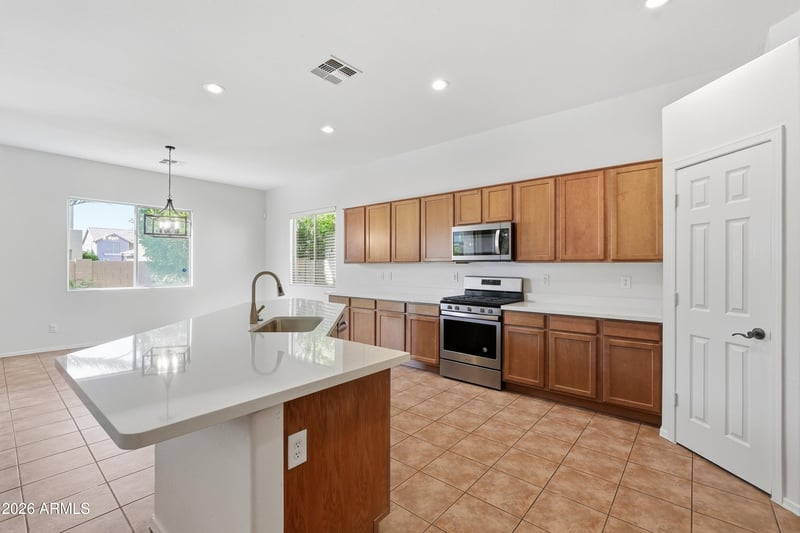 Listing details for 17615 Rimrock St, Surprise, AZ 85388 : Freshly updated 4-bedroom, 2-bath home with a bright, inviting layout and modern finishes throughout. Interior features include fresh paint, new carpet, and new light fixtures, creating a clean and cohesive feel. The kitchen is enhanced with new quartz countertops, ample cabinetry, and a functional design that opens to the main living areas for easy living and entertaining. Spacious bedrooms offer flexibility for family, guests, or a home office, while the primary suite provides a comfortable retreat. The backyard features a pool, perfect for relaxing or hosting, adding to the home's overall appeal and livability.
