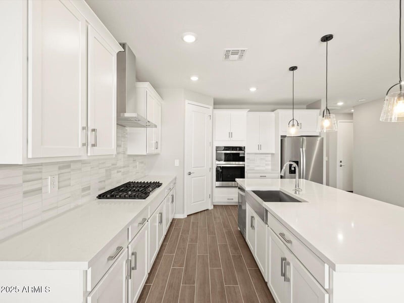 Listing details for 17635 College Dr, Goodyear, AZ 85395 : The Arlo boasts a thoughtfully designed single-story layout with 4 spacious bedrooms, 2.5 modern bathrooms, and a 3-car garage. Its open floorplan seamlessly connects the living, dining, and kitchen areas—ideal for entertaining guests or enjoying everyday moments with family. Whether you're hosting a gathering or savoring a quiet evening in, The Arlo offers the perfect blend of style, space, and functionality. This home has a GOURMET kitchen with a cooktop and separate wall oven, linen-color cabinets, quartz countertops, wood-look tile flooring with carpet in bedrooms! INCLUDED-washer, dryer, window blinds, refrigerator and MORE! EXCLUSIVE community amenities! Built with innovative, energy-efficient features designed to help you ENJOY more SAVINGS!