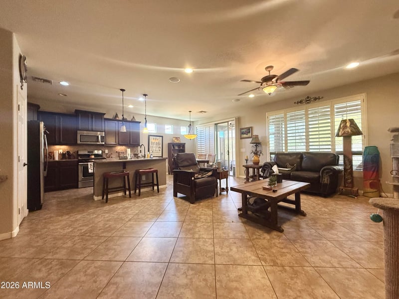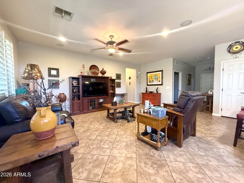Listing details for 17656 Cedarwood Ln, Goodyear, AZ 85338 : Located in the 55+ gated community of CantaMia at Estrella, this 2-bedroom, 2-bath home offers a simple and functional layout with great potential.