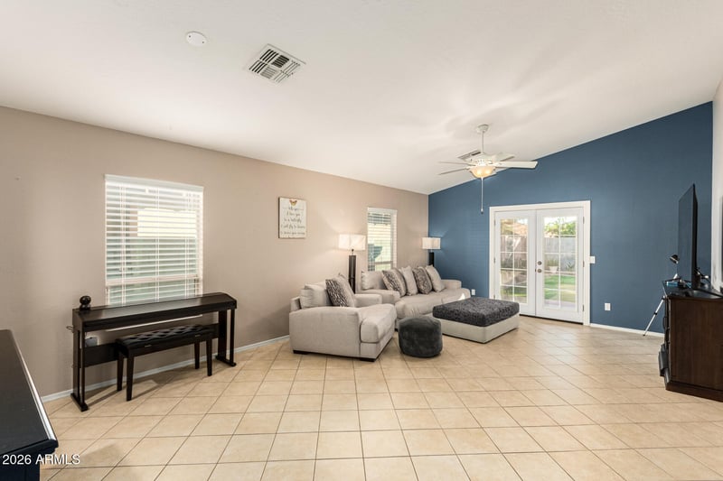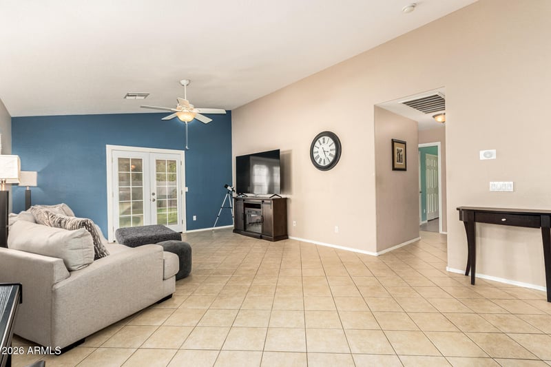 Listing details for 17765 Ventura St, Surprise, AZ 85388 : Welcome to this charming single-level home in Sierra Montana! Offering 3 beds, 2 baths, 2-car garage, and a well-manicured landscape. The inviting interior features tons of natural light, a designer palette, vaulted ceilings, and tile flooring w/wood-look in bedrooms. Enjoy the large living room paired with French doors that merge the inside and outside activities! The eat-in kitchen boasts built-in appliances, a pantry, ample wood cabinetry, and a 2-tier peninsula. Enter the primary bedroom to find a walk-in closet and a full bathroom for added comfort. If you want to relax or have a fun gathering, the perfectly sized backyard awaits! A covered patio, a lush lawn, and a storage shed complete the picture. Minutes away from schools, parks, shopping, restaurants, and 303 Fwy. Make it yours!