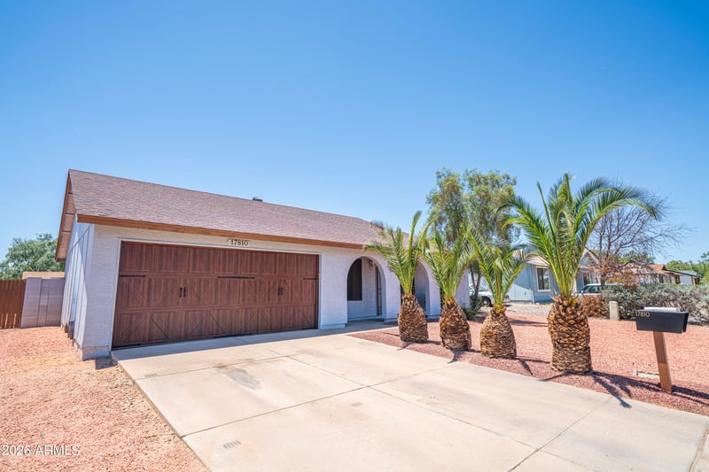 Listing details for 17810 34th Pl, Phoenix, AZ 85032 : Welcome to this beautifully updated home in a prime North Phoenix location. No HOA! This property features brand-new flooring and a new interior & exterior paint job. The fully equipped kitchen boasts an all-new 2025 appliance package that is pristine! Enjoy a bright and inviting layout with spacious living areas, 3 comfortable bedrooms, and plenty of natural light. Beautiful views of Paradise Valley College and PV Golf Course will greet you right at your backdoor. The oversized backyard lays ready for any vision you may have. Don't miss the opportunity to make this move-in-ready home yours!