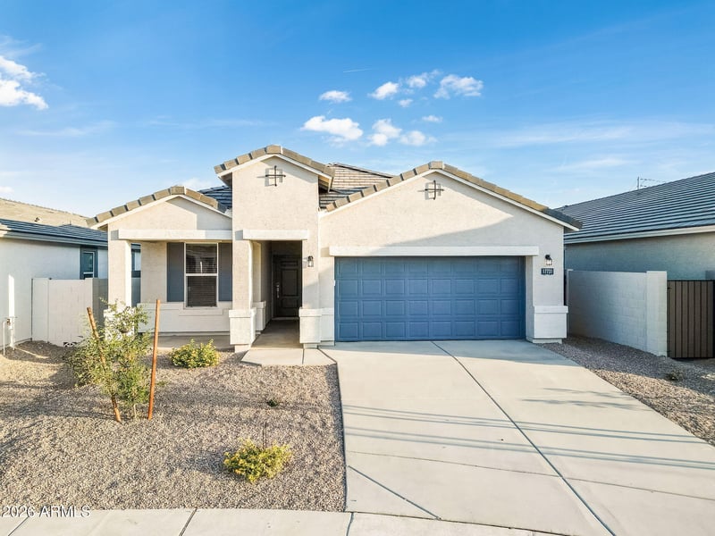 Listing details for 17813 Purdue Ave, Waddell, AZ 85355 : This beautifully upgraded home features a bright, open floor plan designed for modern living. The kitchen showcases crisp white shaker cabinets, quartz countertops, a classic subway tile backsplash, & upgraded stainless steel appliances including range, oven, dishwasher & microwave. Under cabinet lighting adds both ambiance & functionality. Throughout the main living areas, enjoy durable 6x24 inch wood look tile, while upgraded carpet provides comfort in the bedrooms. Elegant 8 ft interior doors enhance the sense of space & style. A sliding glass door opens to the patio, seamlessly blending indoor & outdoor living, perfect for entertaining or relaxing at home