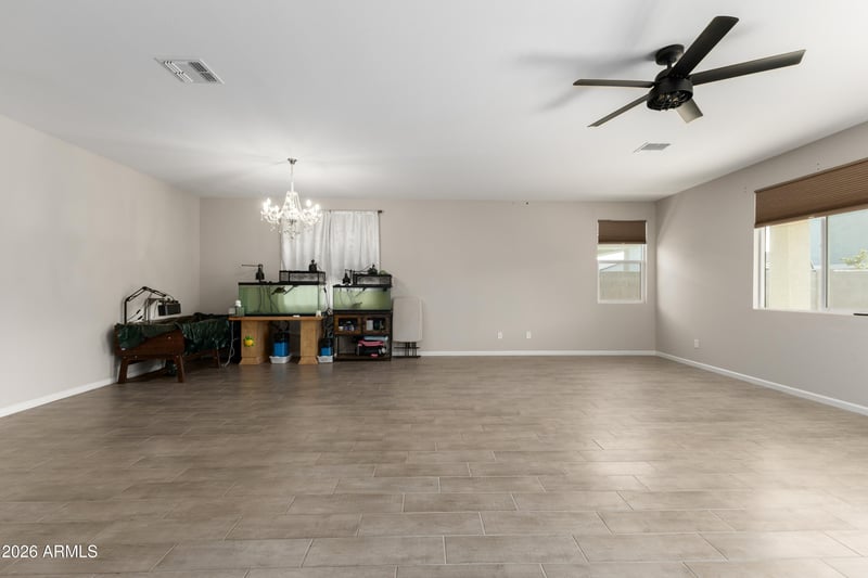 Listing details for 17851 Villa Hermosa Ln, Surprise, AZ 85387 : Like new 2022 single level home in Surprise! This well designed single story gem features 3BR plus den, offering 2,231 sq. ft. of comfortable living with 2.5 BAs plus 2-1/2 car tandem and an open, functional floor plan ideal for today's lifestyle. The spacious kitchen flows seamlessly into the main living room - perfect for everyday living and entertaining. The primary suite features a walk-in shower, double sink vanity and generous closet space. Secondary bedrooms are well sized and the den provides flexibility for a home office, medica room or guest space. Stylist tile flooring highlights the main living areas with carpet in the bedrooms for added comfort. Conveniently located near shopping, restaurants, parks and freeway access.