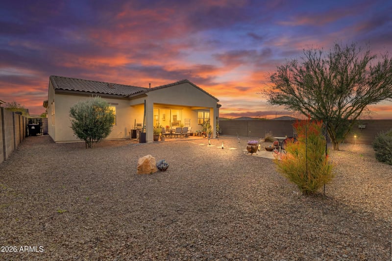 Listing details for 18062 Tanglewood Dr, Goodyear, AZ 85338 : Welcome to Cantamia at Estrella, where every day feels more relaxed and enjoyable. Located on a private corner lot at the end of a cul de sac, this upgraded Taylor Morrison Octave floor plan offers exceptional privacy with no direct back neighbors and a peaceful setting. The home features 2 bedrooms plus a dedicated office, 10 foot ceilings, shutters throughout, ADA height counters, a walk in shower with grab bars, and a built in credenza. The kitchen offers extended cabinetry, under cabinet lighting, RO system, water softener, and ample storage. Additional highlights include a 2-car garage, laundry cabinetry, tankless water heater, gas line to BBQ, power to side gate, holiday outlet, Ring doorbell, and front load washer and dryer conveying. Enjoy Cantamia's resort lifestyle ! Cantamia at Estrella is a premier 55 plus community designed for active living, connection, and everyday enjoyment. Residents enjoy a resort style village center featuring indoor and outdoor pools, spa, fitness center, movement studios, and a full calendar of wellness classes. The community offers pickleball and tennis courts, bocce ball, walking and biking trails, lakes, dog parks, and beautifully maintained common areas. Social opportunities include clubs, interest groups, arts and crafts, games, live music, special events, and organized activities throughout the year. On site dining and gathering spaces create an easy way to connect with friends and neighbors. Cantamia offers a lifestyle focused on staying active, social, and engaged while enjoying the comfort and ease of low maintenance living in a beautifully planned setting.