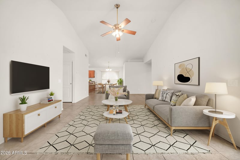 Listing details for 18086 Skyline Dr, Surprise, AZ 85374 : Experience elevated, resort-style living in Arizona Traditions, one of the West Valley's most sought-after gated 55+ communities. This beautifully maintained, one-owner residence offers 2 bedrooms, 2 bathrooms, a dedicated flex space, and a spacious 2-car garage. Inside, you'll find a bright and airy open-concept floor plan enhanced by soaring vaulted ceilings, creating an inviting sense of space. The split floor plan provides added privacy, making it ideal for hosting guests or creating a quiet retreat. The versatile flex space offers endless possibilities--home office, hobby room, or additional lounge area. The home has been well cared for and presents a wonderful opportunity for its next owner to add their own personal style and updates. Whether you're seeking a seasonal getaway or a full-time residence, this property offers the perfect foundation. Outside, enjoy low-maintenance front and backyard spaces, allowing you to spend more time enjoying the exceptional amenities. Residents enjoy access to an 18-hole golf course, a stunning 20,400 sq. ft. clubhouse, three pools, a sports bar, tennis, pickleball, bocce ball, a softball field, fitness center, arts & crafts studios, ballroom, library, and a vibrant calendar of social events.