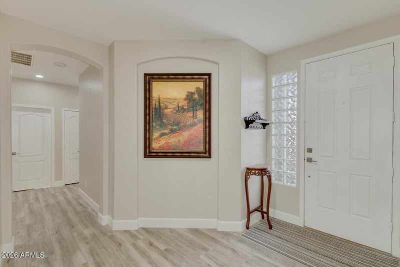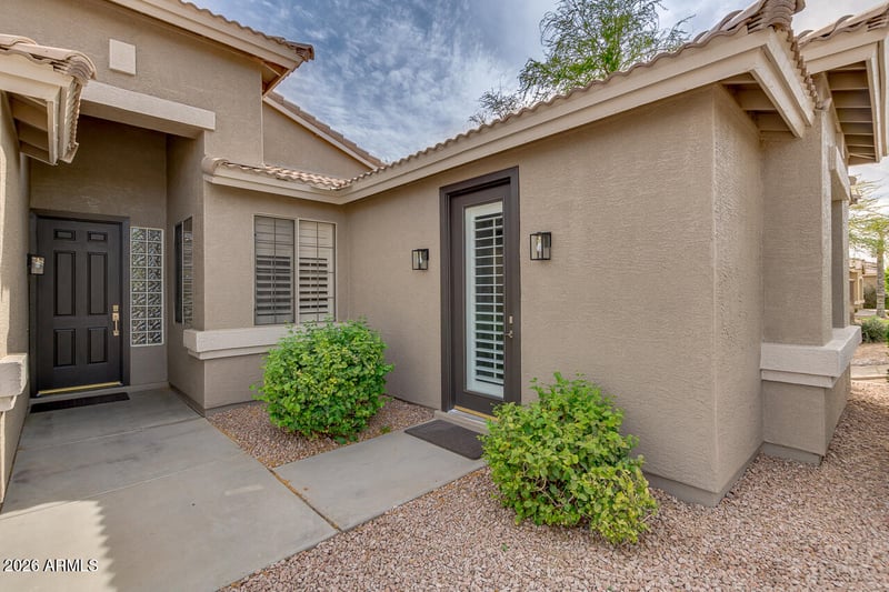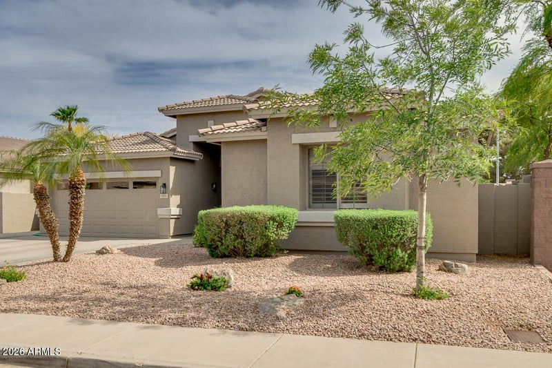 Listing details for 181 Birchwood Pl, Chandler, AZ 85248 : Step into this beautifully remodeled 4+ bedroom home, nestled in a serene gated community, where modern elegance meets comfortable living. Thoughtfully updated in 2020, the residence showcases plank tile flooring throughout (no carpet), plantation shutters, fresh neutral paint, new baseboards, and sophisticated fixtures, creating seamless contemporary living. The gourmet kitchen is an entertainer's dream, featuring quartz countertops, a breakfast bar, glass tile backsplash, and stainless steel appliances, flowing effortlessly into the inviting family room. A separate dining area offers versatility as a formal dining room or bonus space. The luxurious master suite offers private backyard access, a spacious walk-in closet, dual sinks with quartz countertops, a separate shower and toilet room and an oversized garden soaking tub--perfect for unwinding. One of the bedrooms features a private entry, which allows for a variety of uses. The home also includes a flex room that can easily function as a fifth bedroom, making conversion simple and convenient. This home's exceptional layout provides privacy with no western neighbors and direct access to the community common area across the street. Entertain or relax in the expansive backyard featuring a pebble-tech pool and tranquil rock waterfall, ideal for Arizona summers. Additional features include an RV gate, epoxy garage flooring, garage cabinets and a water softener. Currently tenant-occupied; please do not disturb tenants. Available mid-May 2026. Owner/Agent.