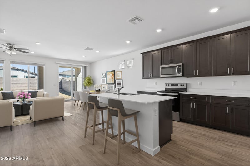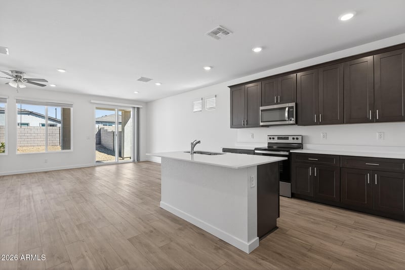 Listing details for 18114 Soft Wind Dr, Surprise, AZ 85387 : Welcome to this beautiful home built in 2024 featuring 4 bedrooms and 2 bathrooms, it offers a spacious and functional layout. The kitchen includes an island with breakfast bar along with sleek appliances for a modern touch. Ceiling fans and blinds are installed throughout for a move-in ready home! Enjoy low-maintenance living with an easy-care landscape and a covered patio, ideal for relaxing or hosting guests. Located in the desirable North Copper Canyon the community offers great amenities including a dog park, sports courts, and a playground, providing something for everyone to enjoy