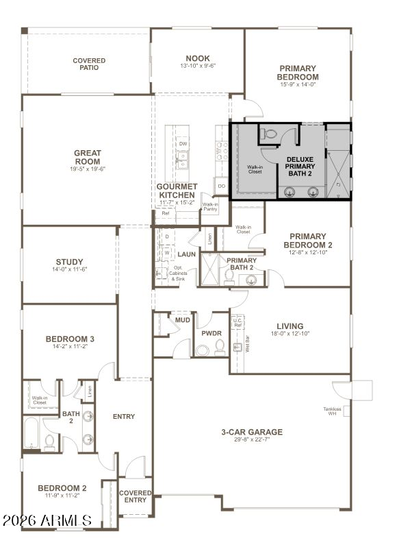 Listing details for 18129 Shiloh Ave, Goodyear, AZ 85338 : Explore this exceptional Darius home, ready for quick move-in. Included features: an inviting covered entry; a quiet study; a gourmet kitchen offering quartz countertops, 42'' cabinets, a wall oven and Gas cooktop, built in microwave and stainless-steel appliances, a walk-in pantry and a center island; an open dining area; a generous great room; a lavish primary suite showcasing a spacious walk-in closet and a private bath with cultured marble countertops; a convenient laundry; a guest suite and a covered patio. This could be your dream home!