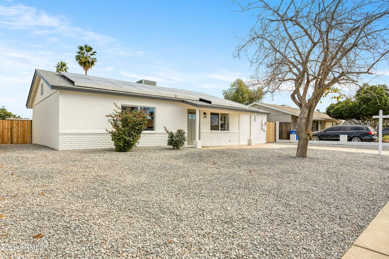 Listing details for 18209 34th Ln, Phoenix, AZ 85053 : Step inside this newly remodeled 3-bedroom, 2-bathroom home featuring modern finishes and thoughtful upgrades throughout. Enjoy brand-new flooring, fresh paint, quartz countertops, new gas range, microwave, recessed lighting, ceiling fans, windows, and more- all creating a bright, seamless split floorplan living space! A huge master retreat offers a relaxing spa-like shower and walk-in closet, with additional walk-in closets in every bedroom. Unwind under the covered back patio overlooking a huge yard, complemented by energy-efficient solar (assumable lease) for impressively low electric bills. Convenient laundry room features hookups for both 220V and gas dryers. Ideally located just minutes from I-17, SR 101, top-rated schools, and premier shopping.