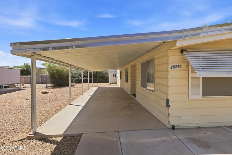 Listing details for 18216 5th Pl, Phoenix, AZ 85022 : Situated on owned land, in a fantastic location, this property offers a great opportunity to make it your own. Open floor plan with spacious living areas and two covered patios, including a 52' x 12' west-facing carport/patio and a 38' x 12' east-facing patio. Property features two sheds, with the larger shed offering two lofts AND electricity. Kitchen includes plenty of space and open concept to living / dining area. Additional highlights include a newer AC (2025), copper piping, and gas heat and hot water. Interior utility room allows for convenient accessibility. Low-maintenance yard, and ample RV/boat parking. Community offers a low HOA with wonderful community amenities including a community pool and pool for the little ones. Incredible value and ready for you to make it your own!