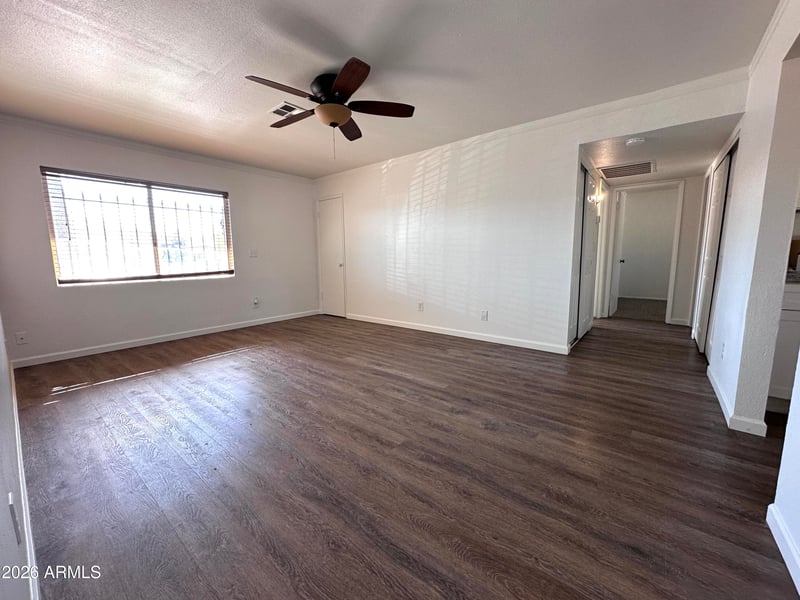 Listing details for 1822 Wayland Dr, Phoenix, AZ 85041 : Beautiful home with generously sized, fully fenced front and back yards. Interior and exterior have been freshly painted. Luxury vinyl plank flooring throughout the home, with new carpet in the bedrooms. The kitchen features white shaker-style cabinets with modern laminate countertops. A large covered patio overlooks the spacious backyard. No HOA. Conveniently located just minutes from South Mountain and easy freeway access.