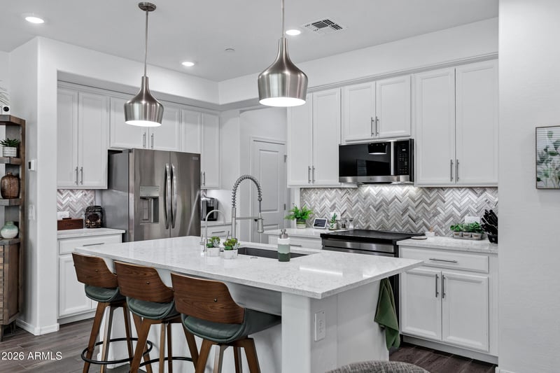 LG Washer/Dryer tower, 1 yr old Induction Range, Smart Home with Security Cameras & Ring Doorbell (owned), 3-zone Heating/Cooling. Perfect location within the community with no neighbors in front and additional guest parking just a few steps away. Fantastic location with easy access to Gilbert's premier shopping, dining &